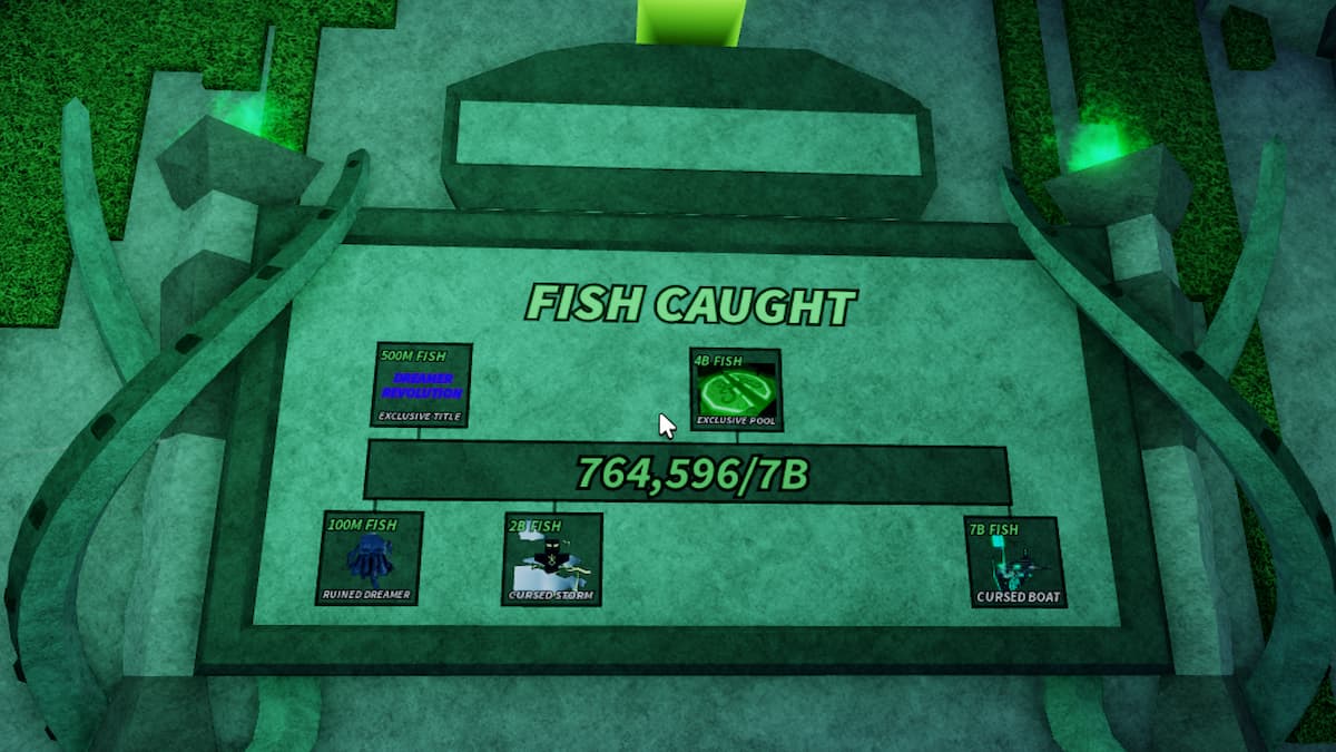 So, how do you access/open this Pool? Well, if you look straight, you will find a banner called Fisch Caught on the wall with a number requirement for each reward available in the area. All you have to do is catch 4 Billion Fish in the game to access the Pool. Don't worry; you alone have not to reel the prescribed number of fish, but it is a community number measured across all the servers. This means all the players on all the Fisch servers have to catch fish to increase the bar and unlock the Pool at the Billion mark.