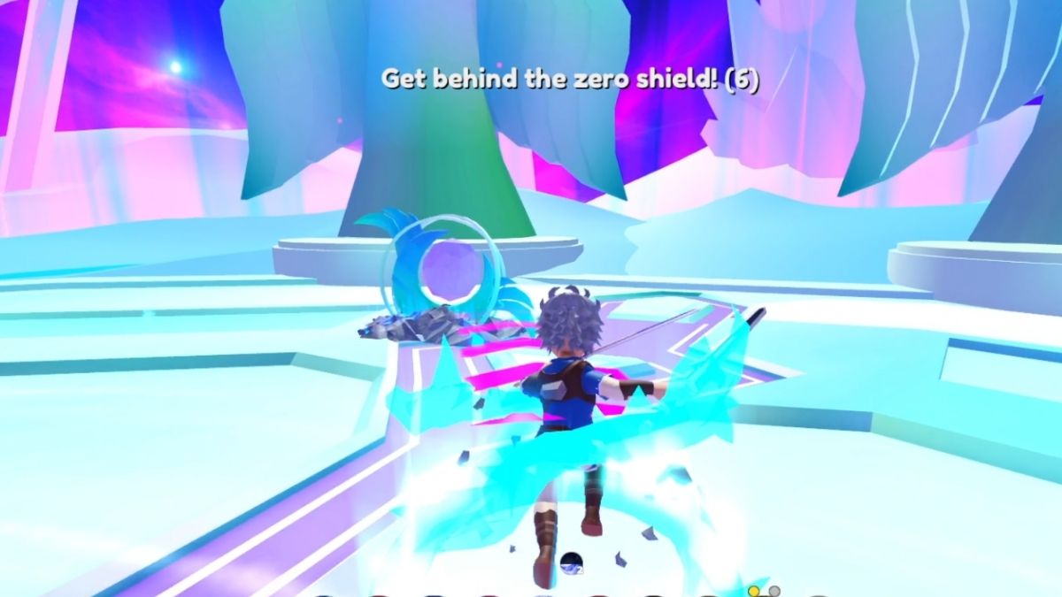 When you get him down to 50% health, he can now do a one shot attack if you don't get behind a Zero Shield on time. You do have three lives, so you can come back, but it's always better when you manage to hide. Try to stick to the middle of the arena so that you can reach a shield no matter where it spawns.